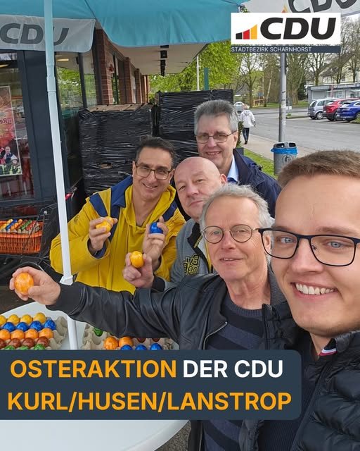 Mit bunten Ostereiern und bester Stimmung war die Ortsunion Husen/Kurl/Lanstrop vor Ort und hat zahlreiche gute Gespräche geführt. Wir bedanken uns herzlich bei allen, die vorbeigeschaut haben und mit uns ins Gespräch gekommen sind!
