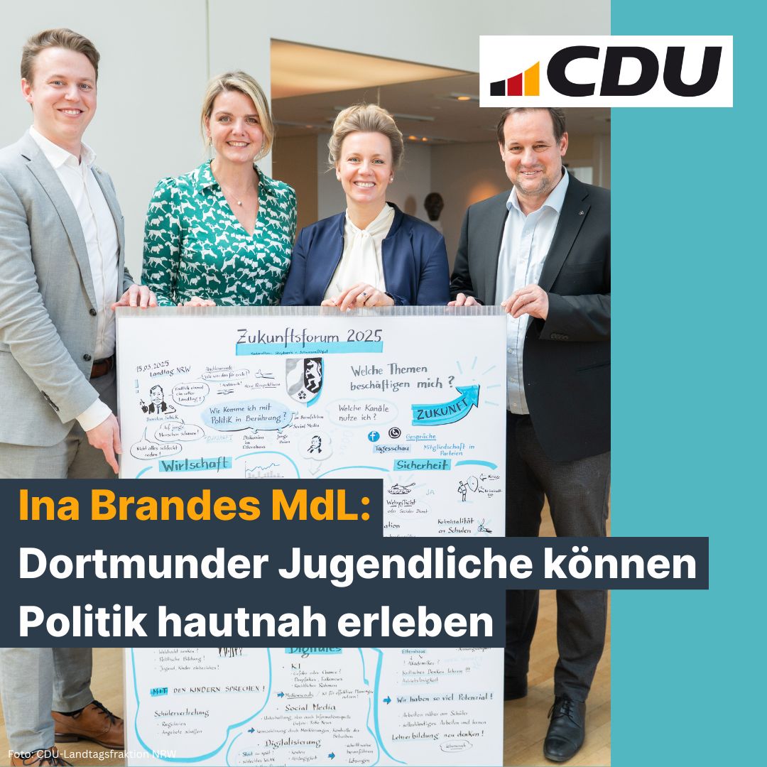 Die Dortmunder Landtagsabgeordnete Ina Brandes lädt junge Menschen aus Dortmund zum Zukunftsforum der CDU-Landtagsfraktion Nordrhein-Westfalen in den Landtag nach Düsseldorf ein.