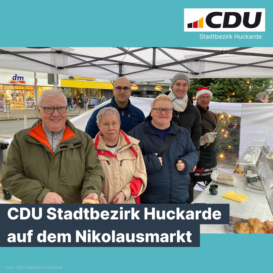 Auch in diesem Jahr war der CDU Stadtbezirk Huckarde mit seinem traditionellen Stand auf dem Huckarder Nikolausmarkt vertreten. Bei Bratwürstchen und Currywurst kamen zahlreiche Besucherinnen und Besucher mit uns ins Gespräch und genossen die stimmungsvolle Atmosphäre.
